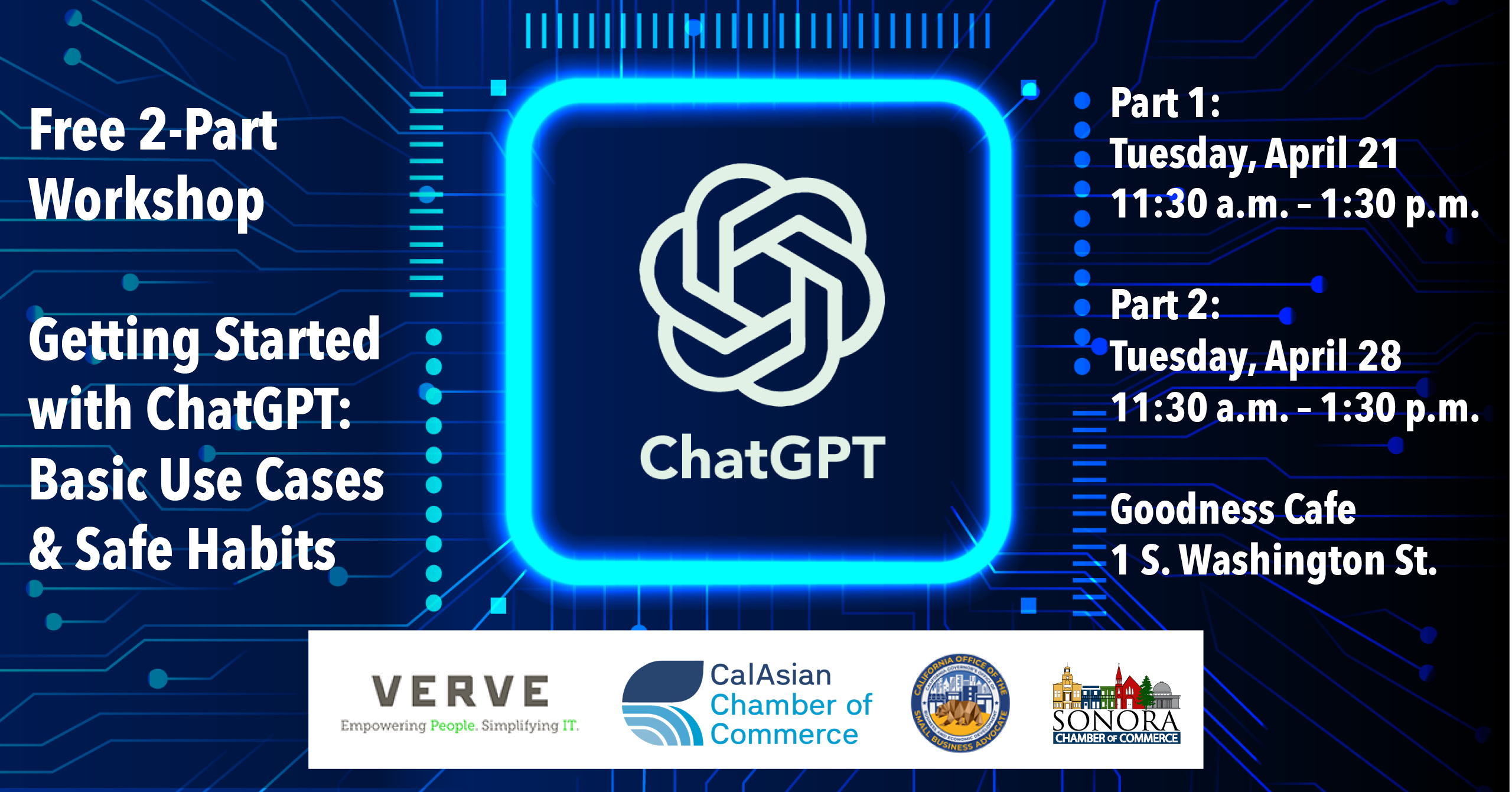 Join us for this free 2-session seminar on ChatGPT. Two AI Training Sessions presented by Verve IT